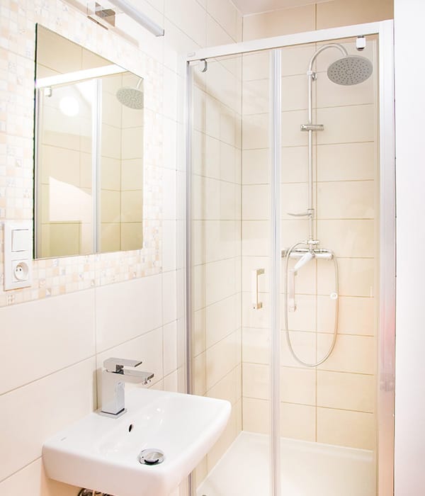 Modern furnished, spacious and bright room with a comfortable double bed providing the desired comfort for a couple or a family of three with a small child.